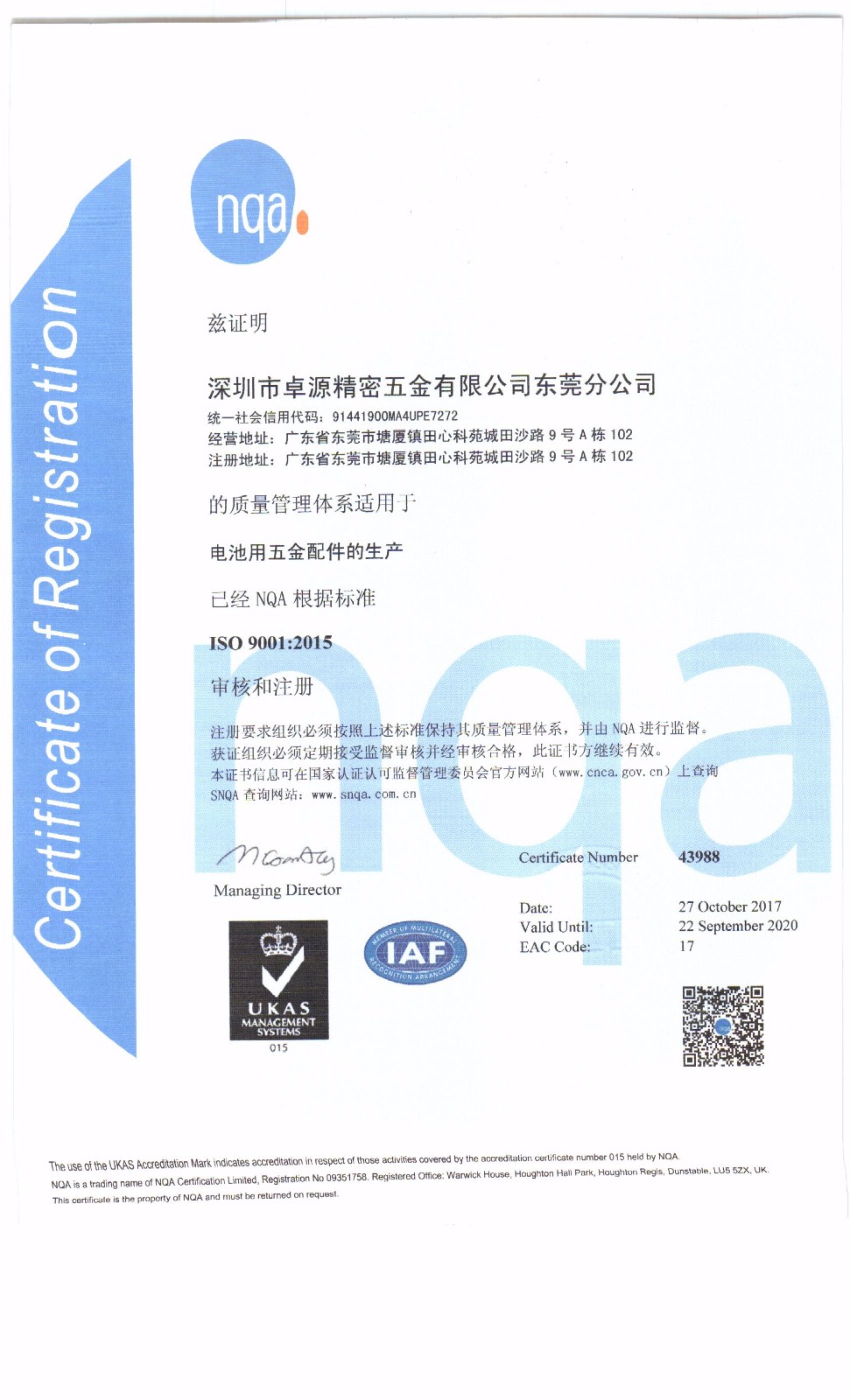 深圳市卓源精密五金有限公司東莞分公司