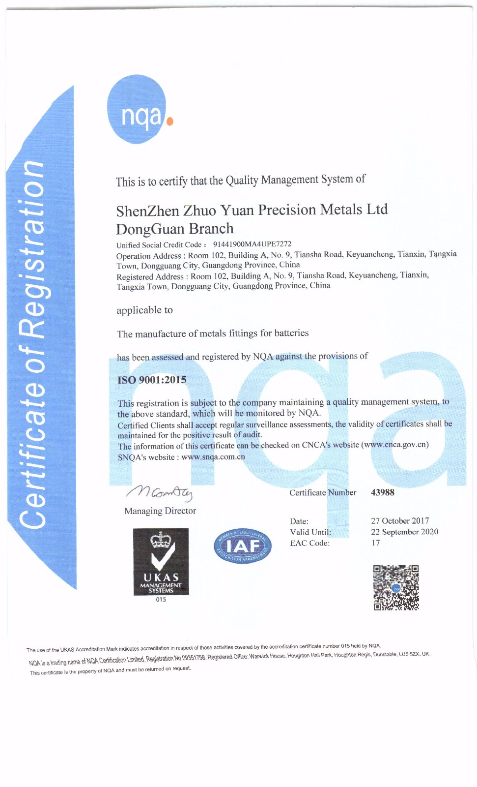 ShenZhen Zhuo Yuan precision metals Co.,Ltd. DongGuan office